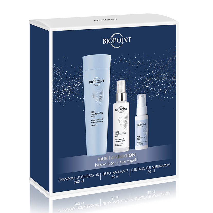 *Test di autovalutazione su 30 donne. Risultati ottenuti con un singolo utilizzo del trattamento Biopoint Hair Lamination Siero Laminante e Cristallo Gel Sublimatore, associato all'utilizzo di Biopoint Hair Lamination Cristallo Gel Sublimatore dopo ogni lavaggio successivo. **Test strumentali effettuati su ciocche decolorate. Risultati ottenuti con l’utilizzo del trattamento Biopoint Hair Lamination Siero Laminante e Cristallo Gel Sublimatore, rispetto all’utilizzo del solo shampoo per lavaggi frequenti.